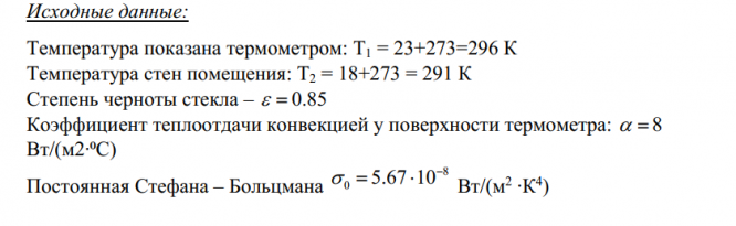 который показывает 23⁰С. Температура стен помещения равна 18⁰С. Оценить