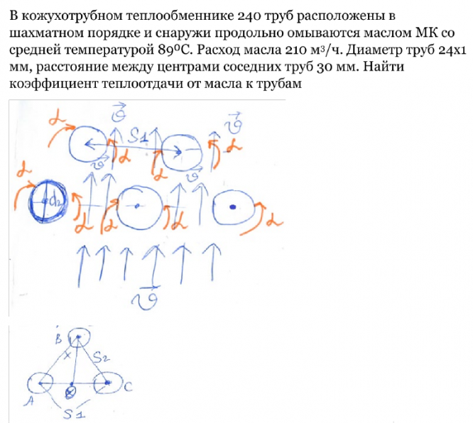 В кожухотрубном теплообменнике 240 труб расположены в шахматном порядке и снаружи продольно омываются маслом МК со средней температурой 89⁰С. Расход масла 210 м3/ч.