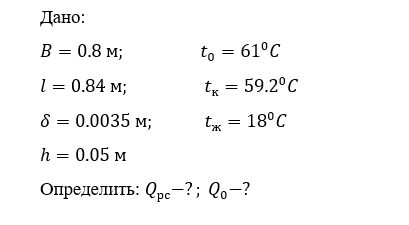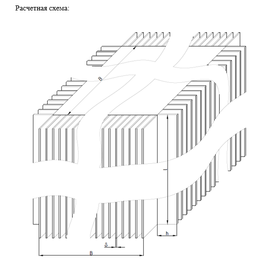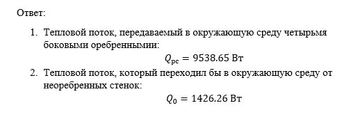 Задача 1 Вариант 66. Определить тепловой поток, передаваемый в окружающую среду четырьмя боковыми оребреннымии сделанными из алюминия стенками холодильника, если каждая стенка размером 0.84х0.8 м имеет 48 ребер.