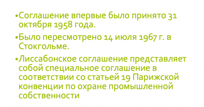 Главная » Учебные материалы » ТИЗИС » Презентации » РТА » 7 семестр » Лиссабонское соглашение об охране наименований мест происхождения и их международной регистрации