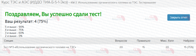 Ответы к заданиям КМ-3: КМ-3. Использование органического топлива на ТЭС. Тестирование - 75%