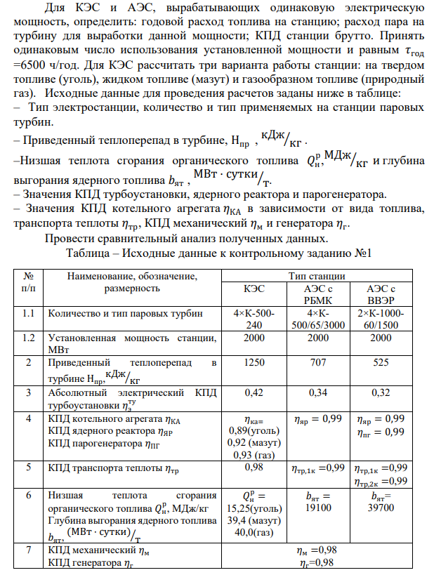 Главная » Учебные материалы » ТЭС и АЭС » Домашние задания » ИДДО НИУ «МЭИ» » Номер КМ-5 » Вариант 1 » КМ-5. Расчет и сравнение показателей работы АЭС и КЭС