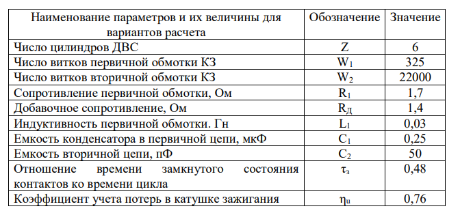 Главная » Учебные материалы » Транспорт » Решения задач » 3 семестр » Рассчитать рабочие характеристики классической батарейной системы зажигания четырехтактного бензинового двигателя