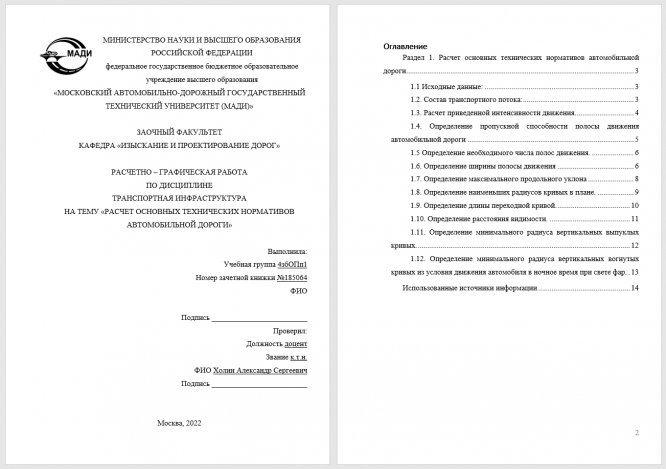 Для студентов МАДИ по предмету Транспортная инфраструктураРасчет основных технических нормативов автомобильной дорогиРасчет основных технических нормативов автомобильной дороги