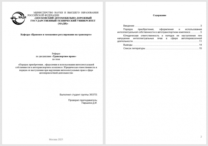 Для студентов МАДИ по предмету Транспортное правоПорядок приобретения , оформления и использования интеллектуальной собственности в автотранспортном комплексе. Юридическая отвеественность и порядок еПорядок приобретения , оформления и использования интеллектуальной собственности в автотранспортном комплексе. Юридическая отвеественность и порядок е