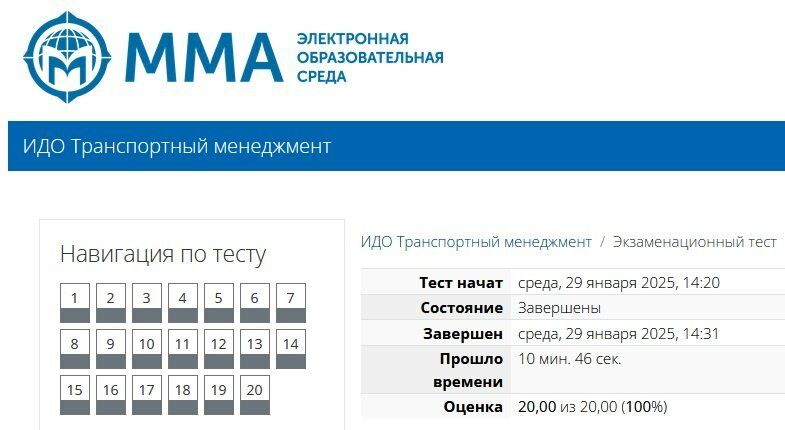 Сборник ответов к экзаменационному тесту Транспортный менеджмент ММА.