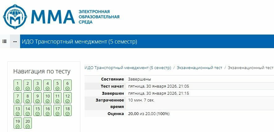 Сборник ответов к экзаменационному тесту Транспортный менеджмент ММА.
