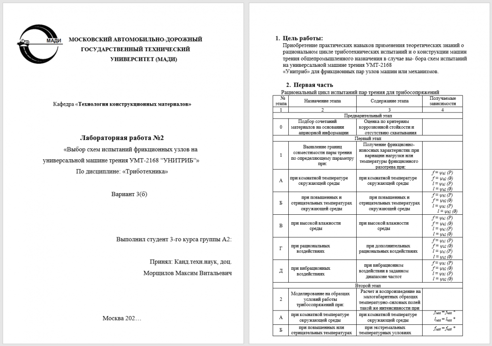 Лабораторная работа 2: Выбор схем испытаний фрикционных узлов на универсальной машине трения УМТ-2168 ”УНИТРИБ”