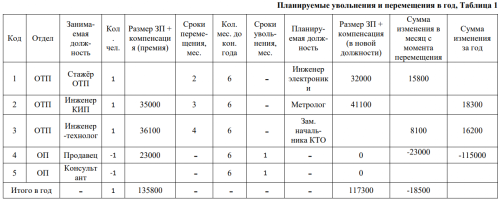 Дано: Известно, что происходит сокращение персонала через месяц, сумма экономии в месяц с премией составляет 48,5 тыс.руб. Заполнить пустые ячейки таблицы исходя из приведённых данных.