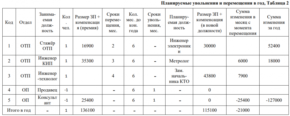Дано: Известно, что происходит сокращение персонала через месяц, сумма экономии в месяц с премией составляет 48 тыс.руб. Заполнить пустые ячейки таблицы исходя из приведённых данных.