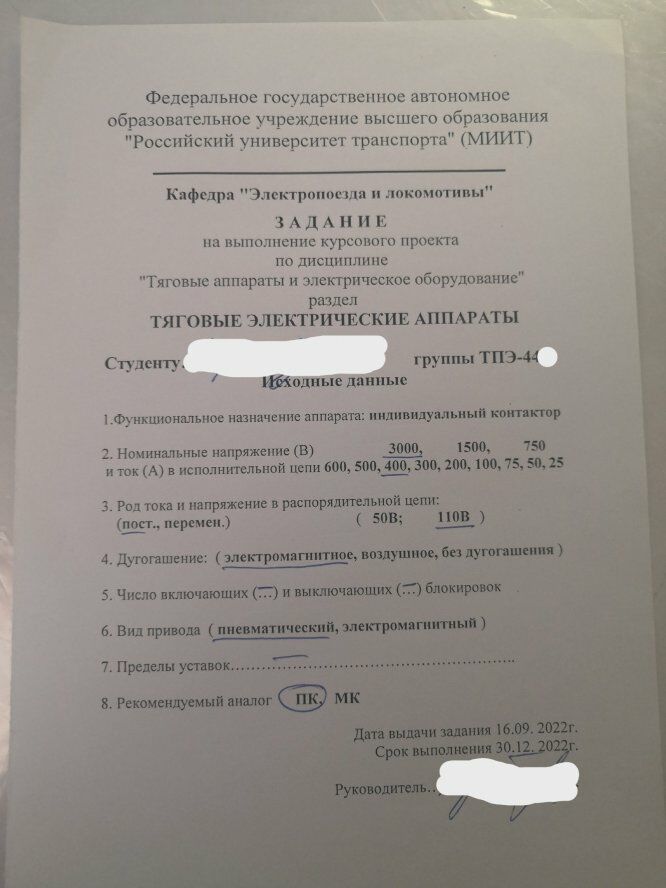Тяговые аппараты и электрическое оборудование электроподвижного состава - U=3000(В), I=400(A), Iпост Uпост=110(В), электромагнитное, пневматический, ПК ВВЕДЕНИЕ4 1 Выбор конструктивной схемы и конструктивных форм. Компоновка конструкции5 2 Проектирование токоведущего контура контактора8 2.1 Расчет токоведущих частей8 2.2 Расчет коммутационных контактов10 2.2.1 Определение ширины контакта12 2.2.2 Определение расчетной силы нажатия контактов13 2.2.3 Определение величины предельного тока13 2.2.4 Определение тока аварийной перегрузки14 2.2.5 Определение требуемой силы нажатия контактов14 2.2.6 Выбор унифицированной контактной накладки15 2.2.7 Определение износостойкости контактов15 2.3 Проектирование контактных соединений17 2.3.1 Неразборные контактные соединения17 2.3.2 Разборные контактные соединения17 2.4 Разработка эскиза контакта17 3 Расчет дугогасительного устройства18 3.1 Выбор системы дугогашения18 3.2 Выбор конструкции, размеров дугогасительной камеры и расчет электромагнитной дугогасительной системы20 3.3 Расчет параметров дугогасительной катушки22 3.4 Расчет параметров стального сердечника24 .