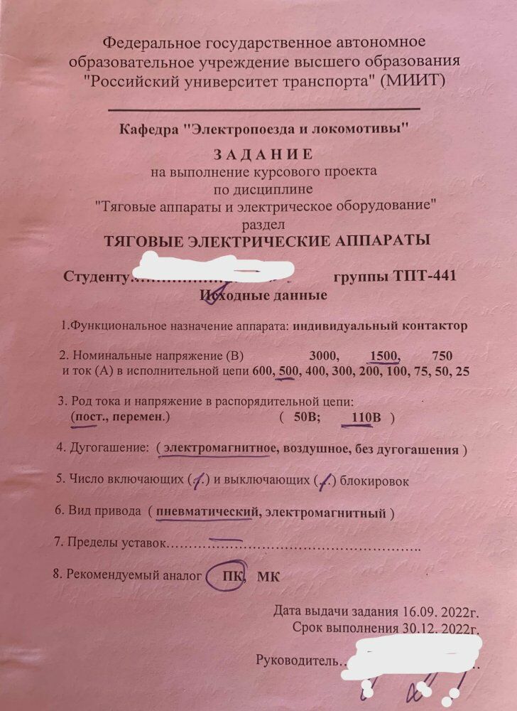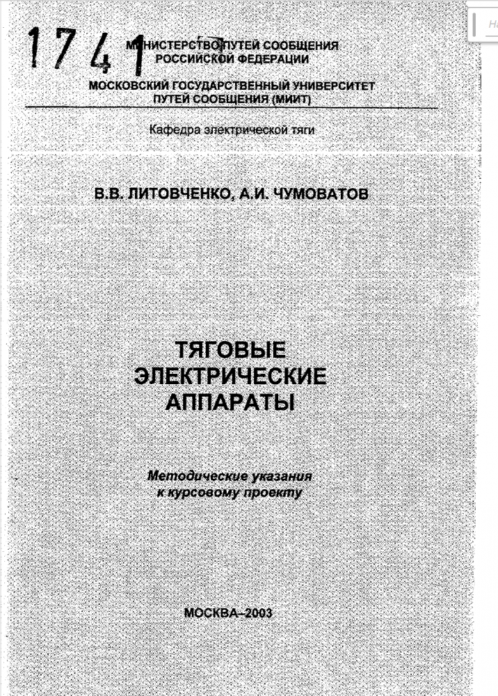 Тяговые аппараты и электрическое оборудование электроподвижного состава - U=1500(В), I=500(A), Iпост Uпост=110(В), электромагнитное, пневматический, ПК ВВЕДЕНИЕ4 1 Выбор конструктивной схемы и конструктивных форм. Компоновка конструкции5 2 Проектирование токоведущего контура контактора8 2.1 Расчет токоведущих частей8 2.2 Расчет коммутационных контактов10 2.2.1 Определение ширины контакта12 2.2.2 Определение расчетной силы нажатия контактов13 2.2.3 Определение величины предельного тока13 2.2.4 Определение тока аварийной перегрузки14 2.2.5 Определение требуемой силы нажатия контактов14 2.2.6 Выбор унифицированной контактной накладки15 2.2.7 Определение износостойкости контактов15 2.3 Проектирование контактных соединений17 2.3.1 Неразборные контактные соединения17 2.3.2 Разборные контактные соединения17 2.4 Разработка эскиза контакта17 3 Расчет дугогасительного устройства18 3.1 Выбор системы дугогашения18 3.2 Выбор конструкции, размеров дугогасительной камеры и расчет электромагнитной дугогасительной системы20 3.3 Расчет параметров дугогасительной катушки22 3.4 Расчет параметров стального сердечника24 .