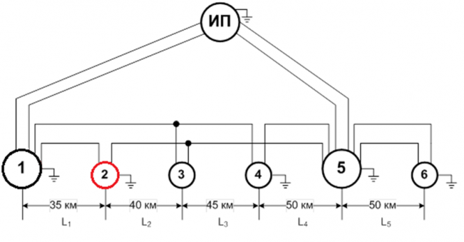 Тип тяговой подстанции и ее номер на рисунке 1 − транзитная №2.