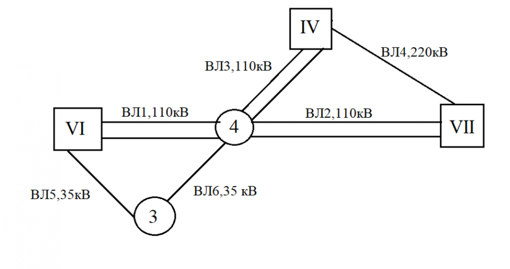 ВЛ (1,2,3): двухцепная ЛЭП – 110 кВ (Uср = 115 кВ; Xo = 0,4 Ом/км)