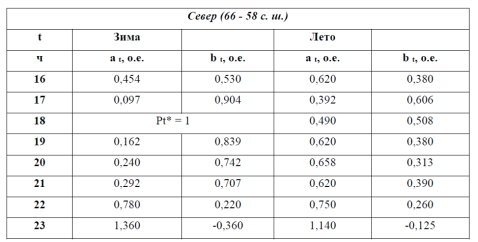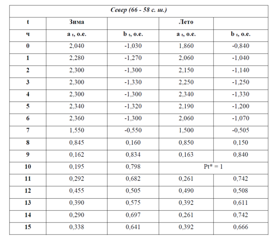 4.По таблице 1 определяем - коэффициенты, зависящие от сезона, района, в котором расположена энергосистема, и времени суток