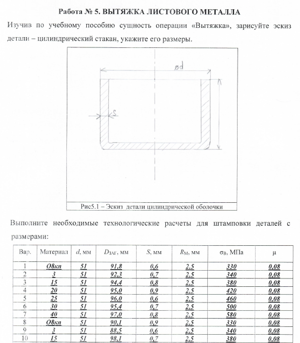 Для студентов МГТУ им. Н.Э.Баумана по предмету Учебно-технологическая практика (УТП)Вытяжка изделия из листовой заготовкиВытяжка изделия из листовой заготовки