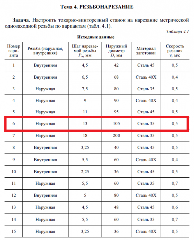 Лабораторная работа 4: Резьбонарезание вариант 6