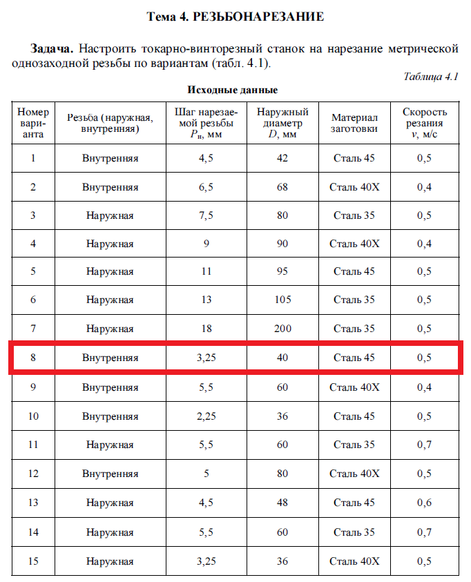 Лабораторная работа 4: Резьбонарезание вариант 8