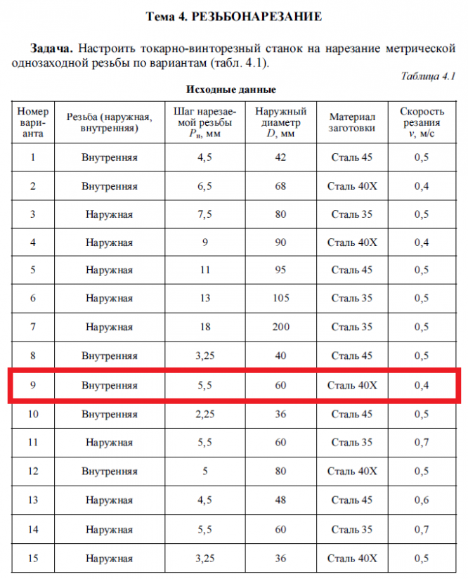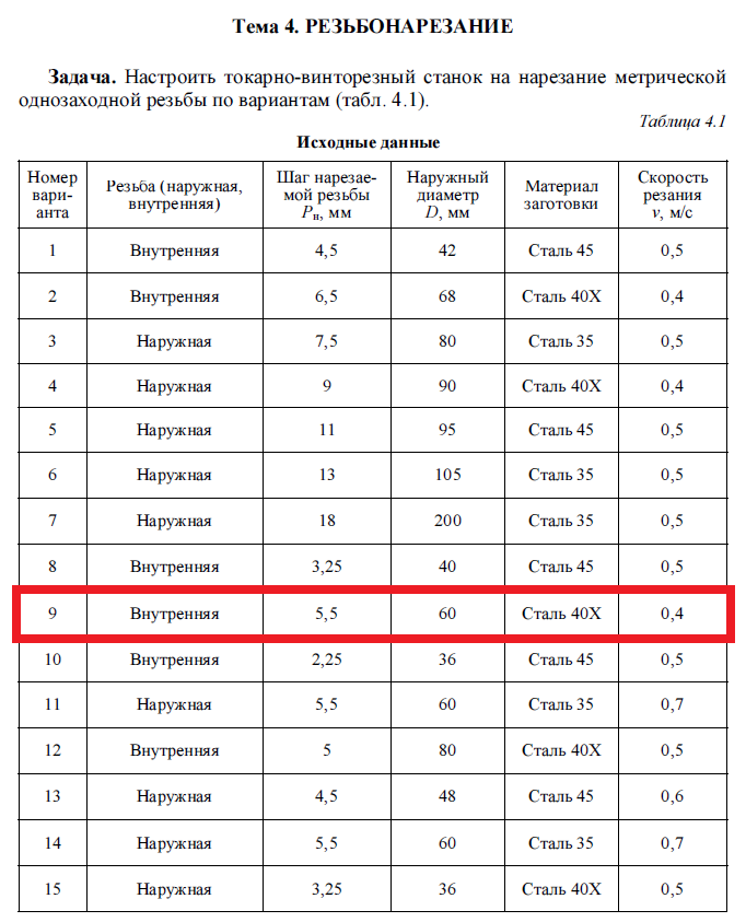 Лабораторная работа 4: Резьбонарезание вариант 9