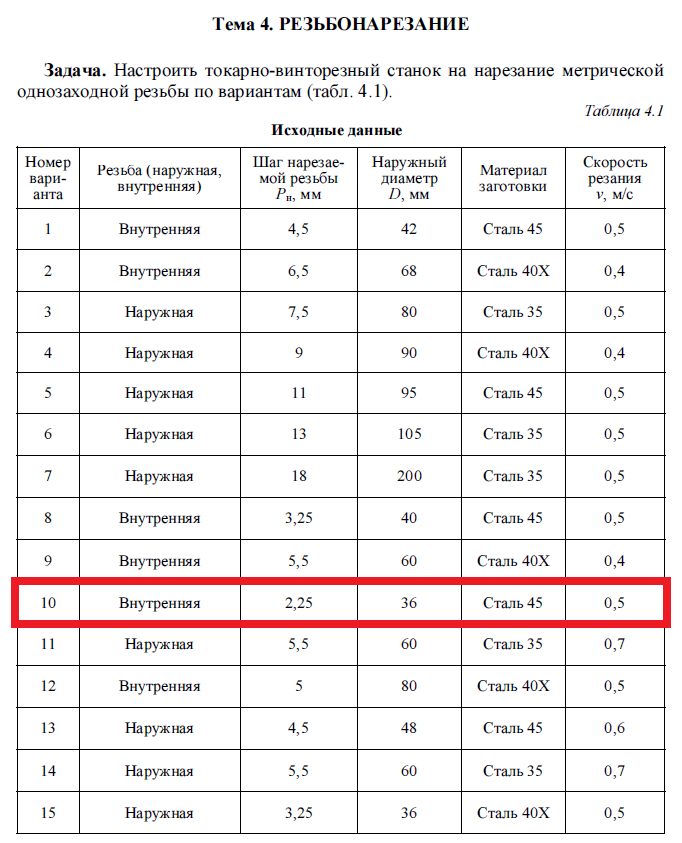 Лабораторная работа 4: Резьбонарезание вариант 10