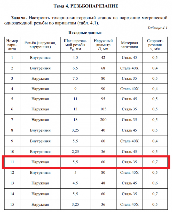 Лабораторная работа 4: Резьбонарезание вариант 11