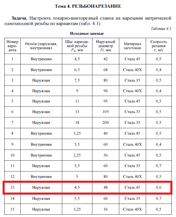 Лабораторная работа 4: Резьбонарезание вариант 13
