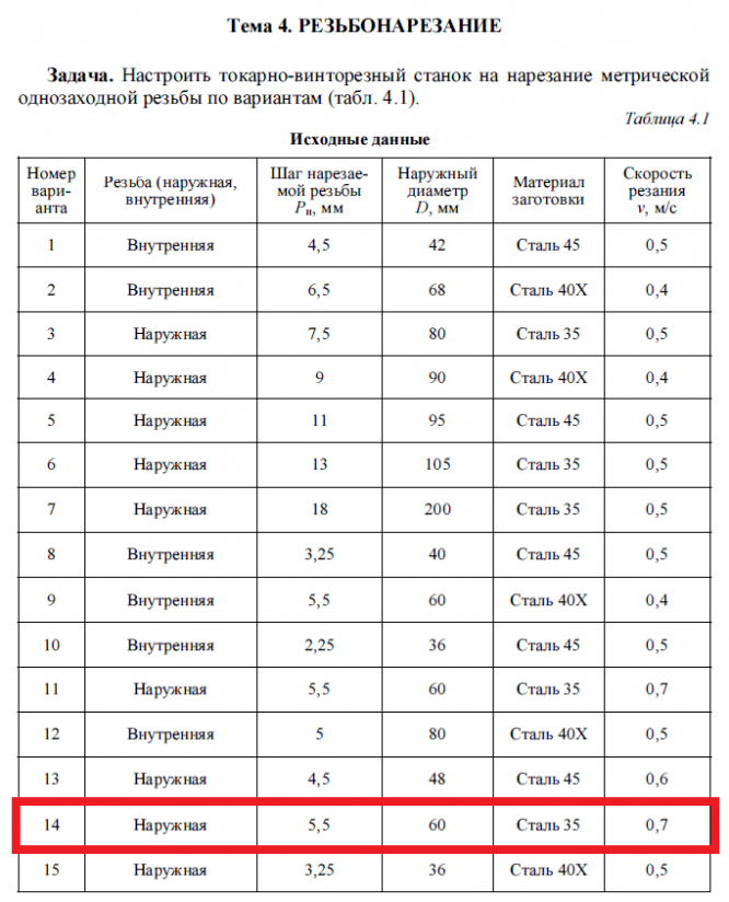 Лабораторная работа 4: Резьбонарезание вариант 14