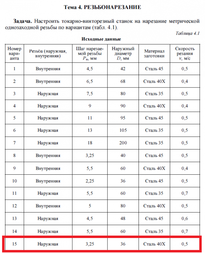 Лабораторная работа 4: Резьбонарезание вариант 15