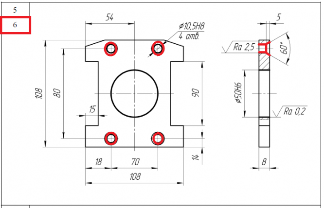 Лабораторная работа 6: Обработка отверстий вариант 6
