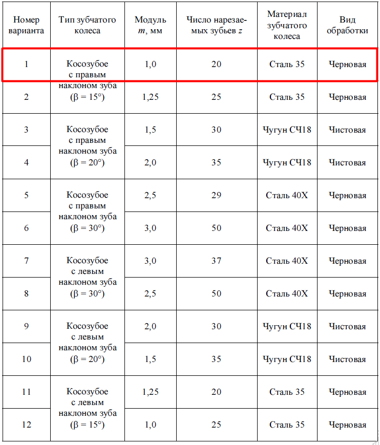Лабораторная работа 8: Зубофрезерование вариант 1