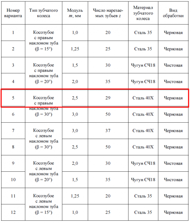 Лабораторная работа 8: Зубофрезерование вариант 5