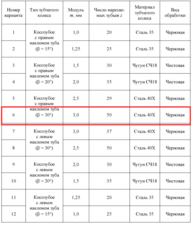 Лабораторная работа 8: Зубофрезерование вариант 6