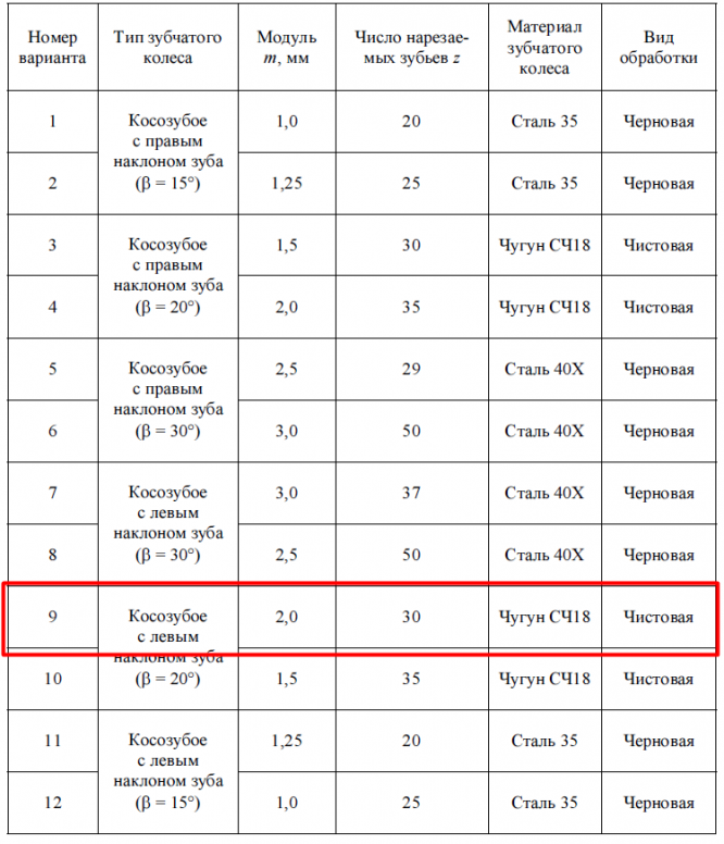 Лабораторная работа 8: Зубофрезерование вариант 9