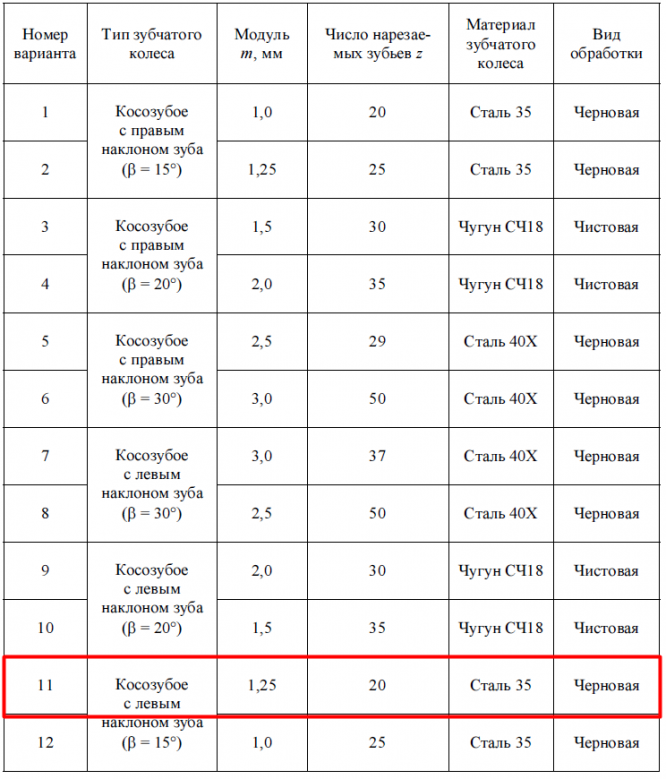 Лабораторная работа 8: Зубофрезерование вариант 11