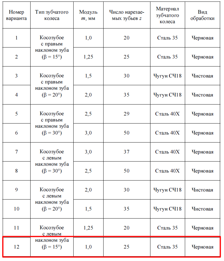Лабораторная работа 8: Зубофрезерование вариант 12
