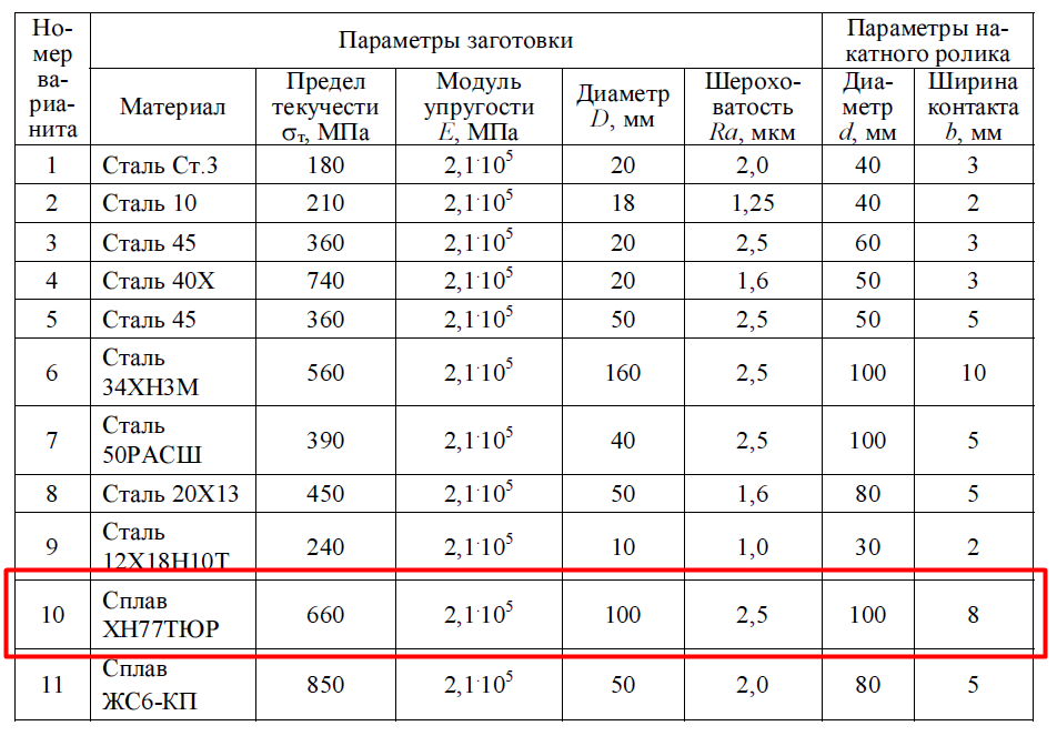Лабораторная работа 10: Обработка заготовок методами поверхностного пластического деформирования вариант 10