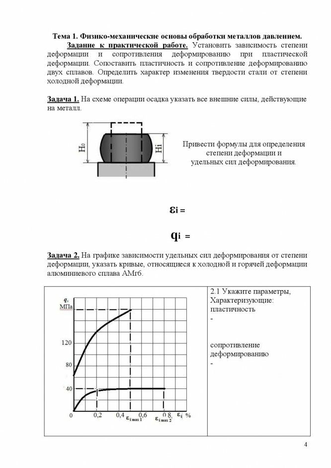 1. Имеется цилиндрическая заготовка высотой 100 мм из сплава с максимальной степенью деформации 0,32. Можно ли из данной заготовки получить холодной деформацией диск высотой 25 мм?