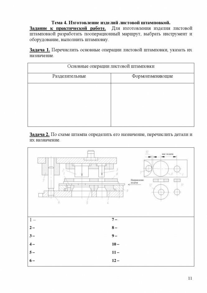 Для студентов МГТУ им. Н.Э.Баумана по предмету Учебно-технологическая практика (УТП)Изготовление изделий листовой штамповкойИзготовление изделий листовой штамповкой