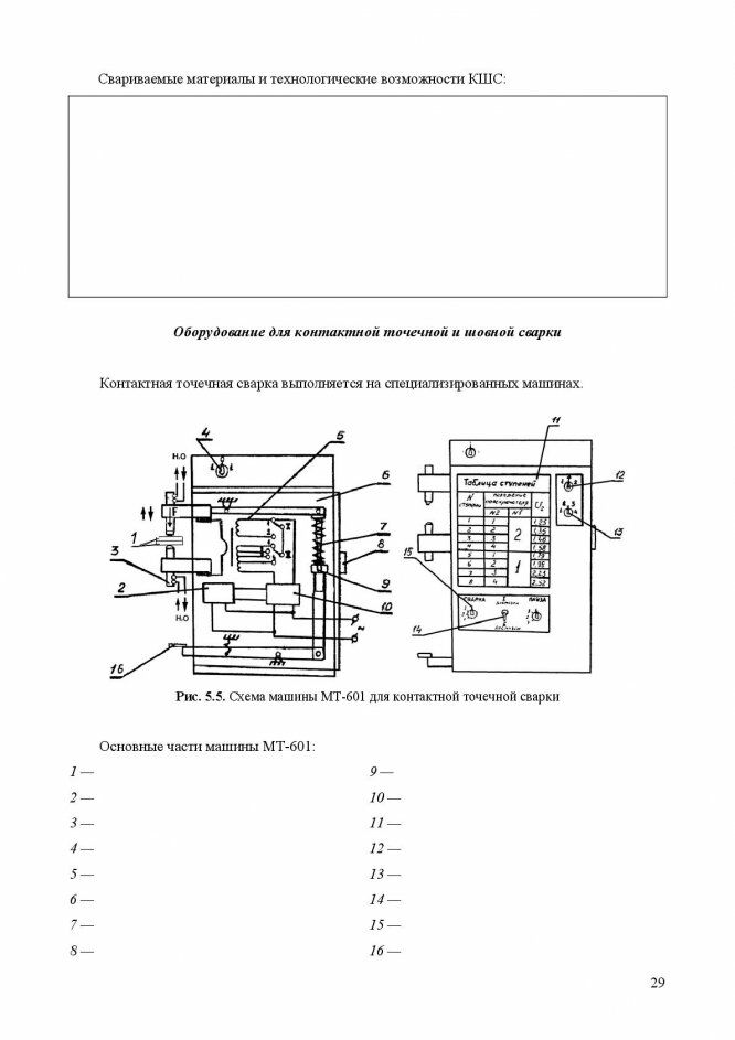 6. Из каких основных частей состоят машины для контактной и точечной и шовной сварки?