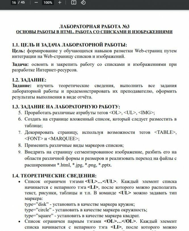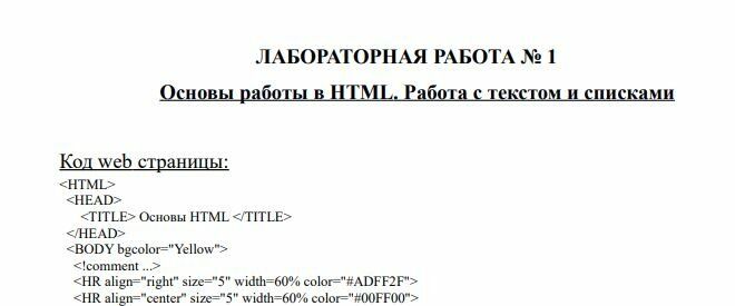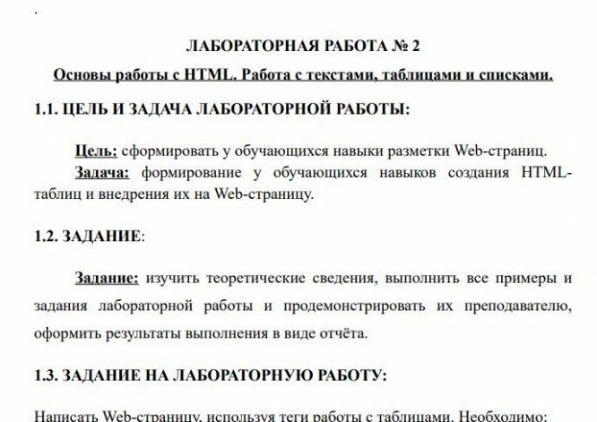 ЛАБОРАТОРНАЯ РАБОТА № 2 Основы работы с HTML. Работа с текстами, таблицами и списками.