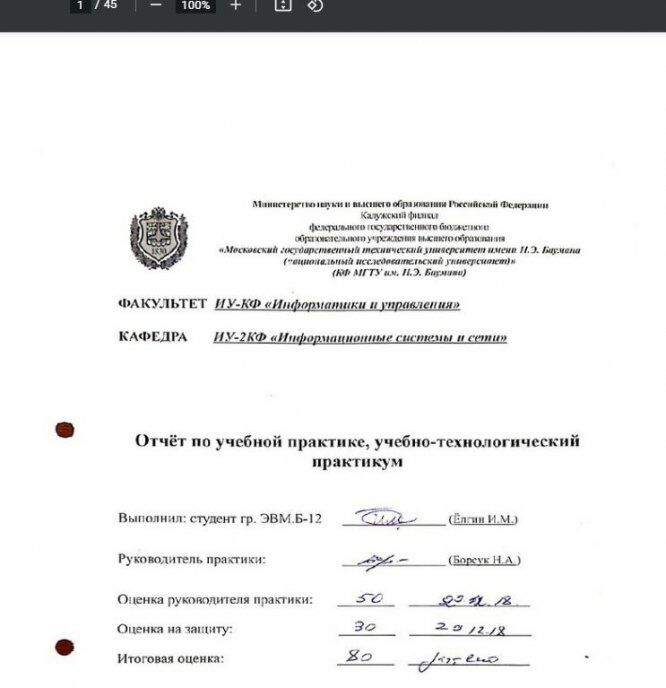 Главная » Учебные материалы » Учебно-технологическая практика (УТП) » Отчёты по практике » МГТУ им. Н.Э.Баумана » 1 семестр » Отчет о прохождении учебно-технологической практики кафедра ИУ2