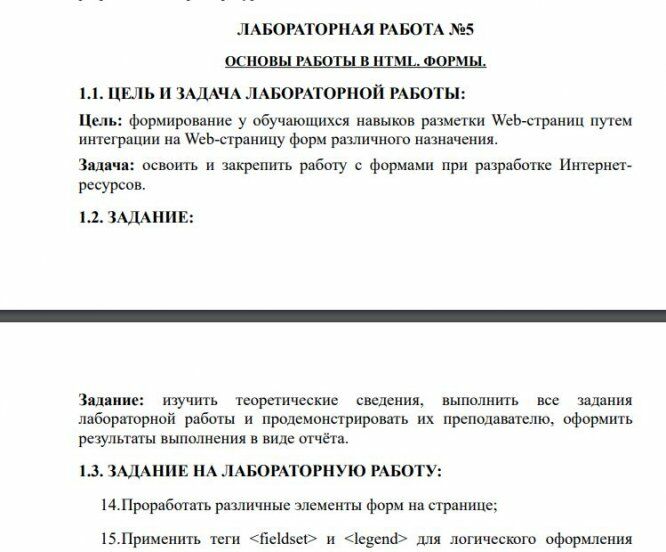 ЛАБОРАТОРНАЯ РАБОТА №5 ОСНОВЫ РАБОТЫ В HTML. ФОРМЫ.