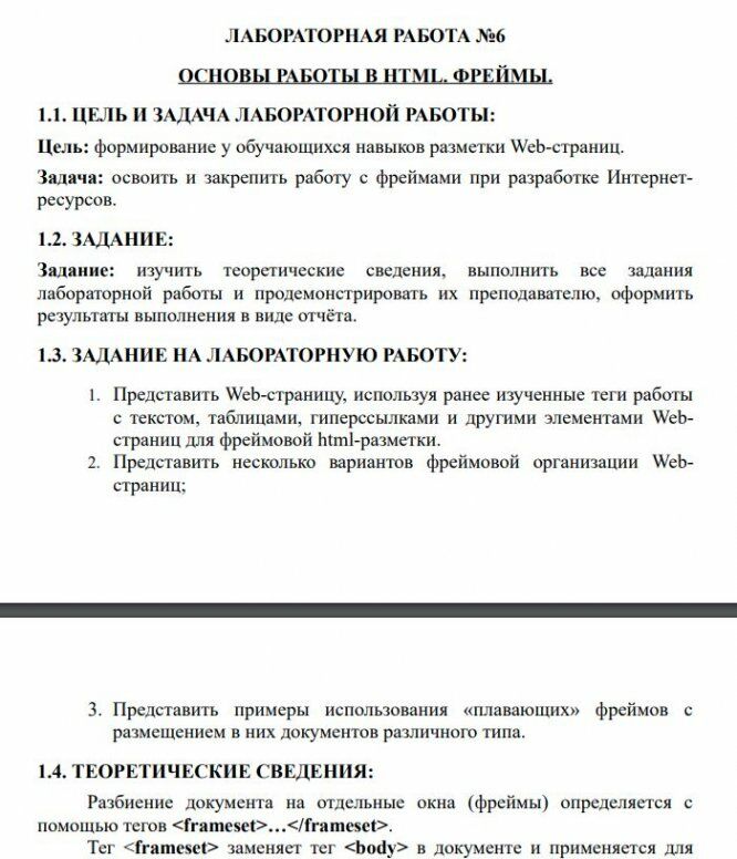 ЛАБОРАТОРНАЯ РАБОТА №6 ОСНОВЫ РАБОТЫ В HTML. ФРЕЙМЫ.