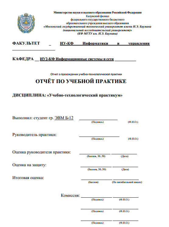 Для студентов МГТУ им. Н.Э.Баумана по предмету Учебно-технологическая практика (УТП)Отчет о прохождении учебно-технологической практикиОтчет о прохождении учебно-технологической практики