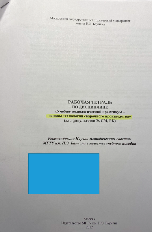 Рабочая тетрадь: Основы технологии сварочного производства