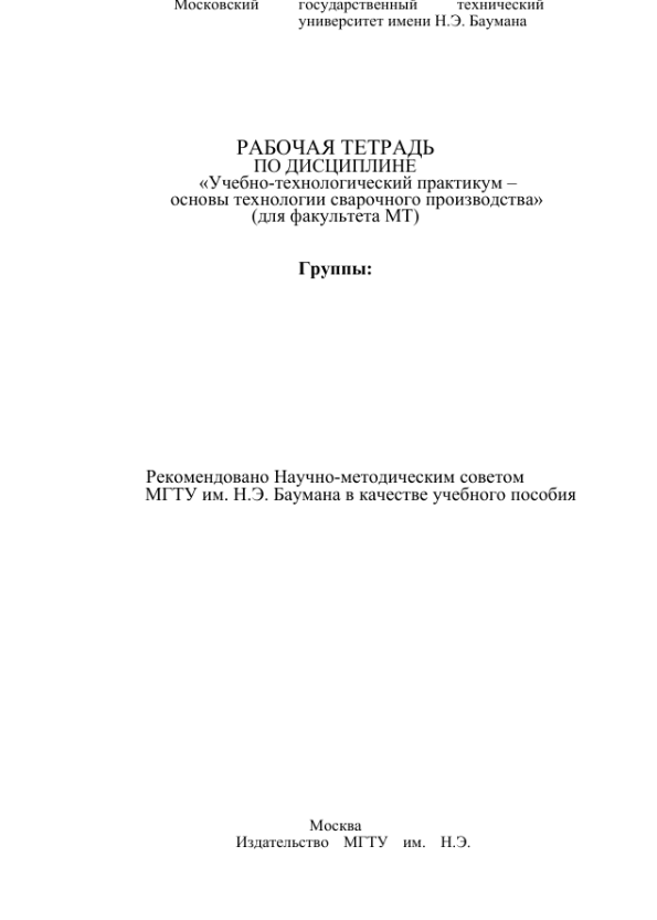 Для студентов МГТУ им. Н.Э.Баумана по предмету Учебно-технологическая практика (УТП)Основы технологии сварочного производстваОсновы технологии сварочного производства