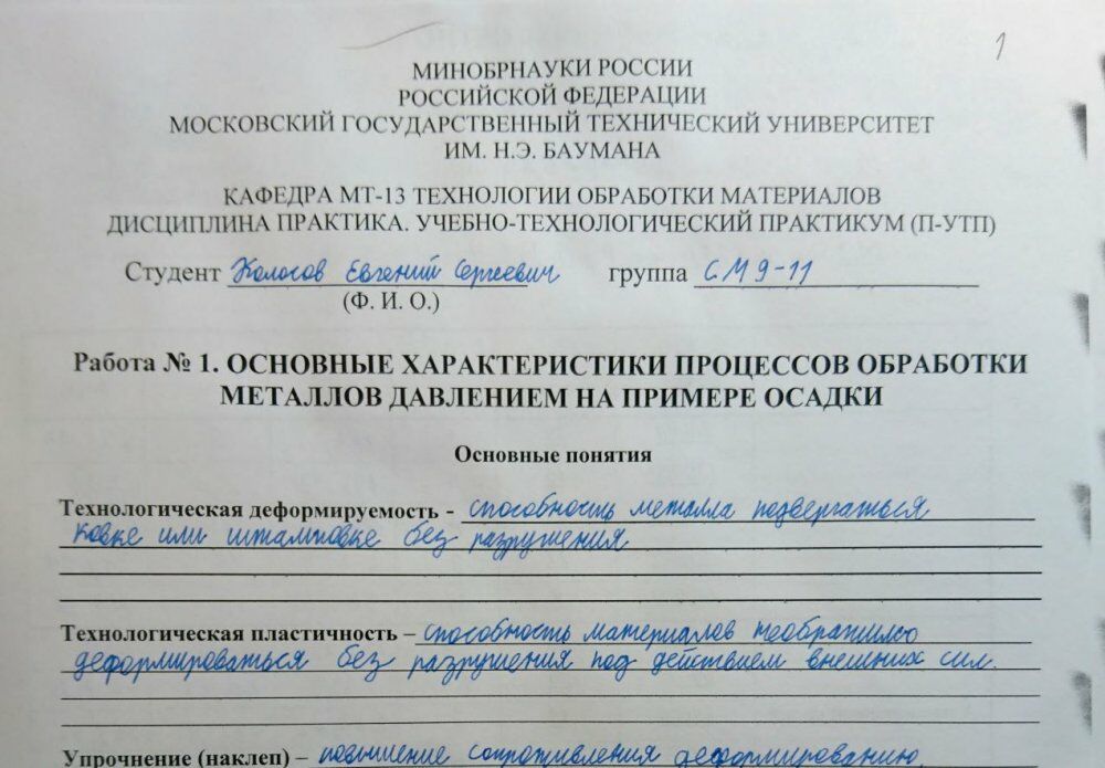 Для студентов МГТУ им. Н.Э.Баумана по предмету Учебно-технологическая практика (УТП)Обработка давлениемОбработка давлением