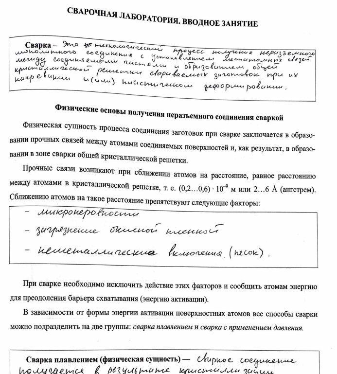 Рабочая тетрадь: Основы технологии сварочного производства