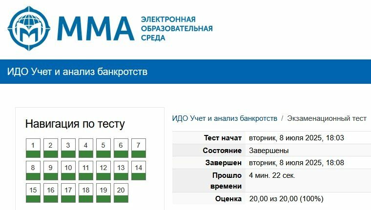 Сборник ответов к экзаменационному тесту Учет и анализ банкротств ММА.