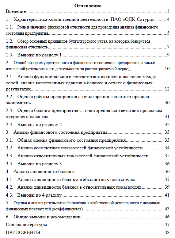 Курсовая работа: Анализ финансовой отчетности предприятия на примере ПАО "ОДК-Сатурн"